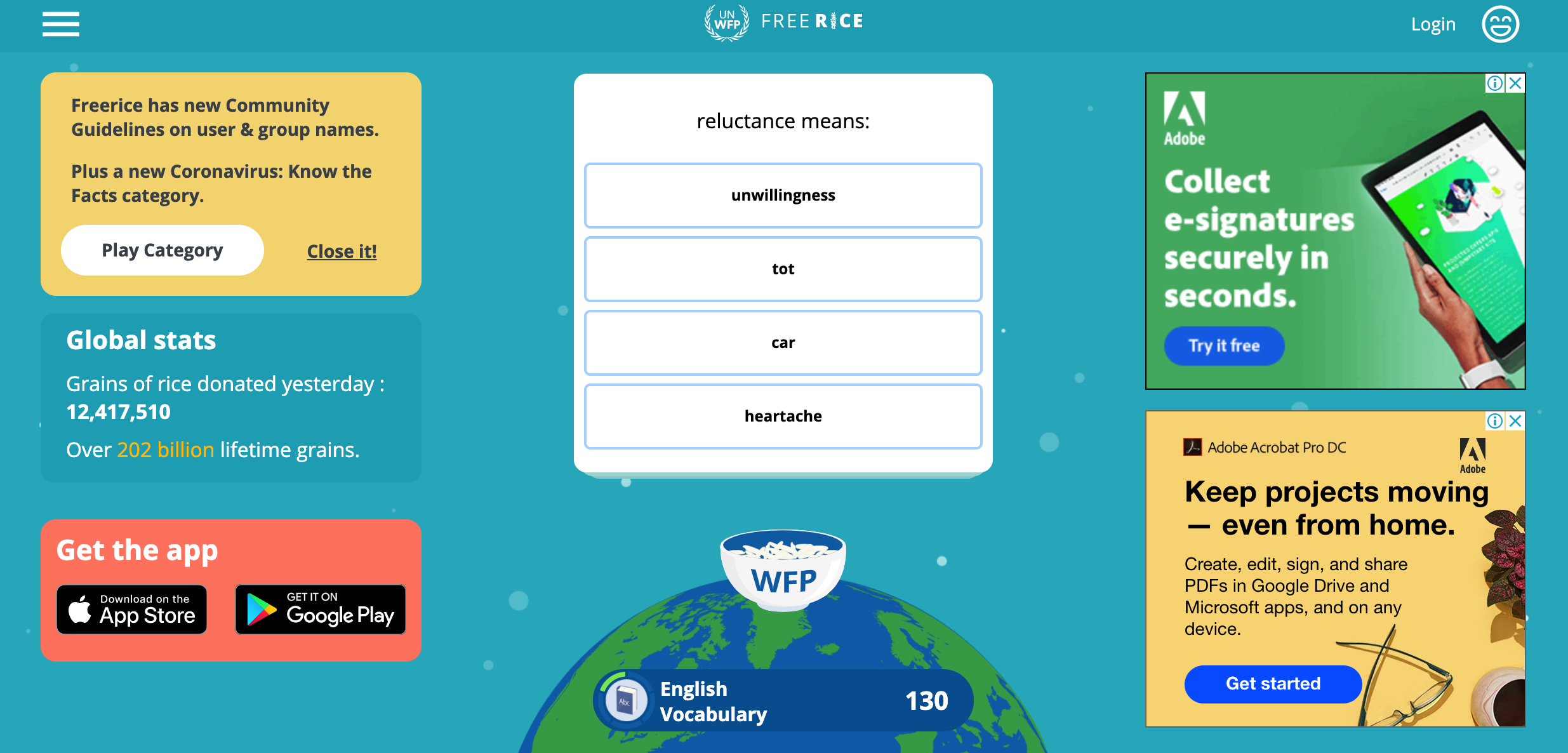 蠻有趣的一個網站,結合英語教學與慈善。每點擊一次正確答案就會送出米粒給需要的飢餓兒童。據統計目前已經送出億粒顆大米給需要的兒童。